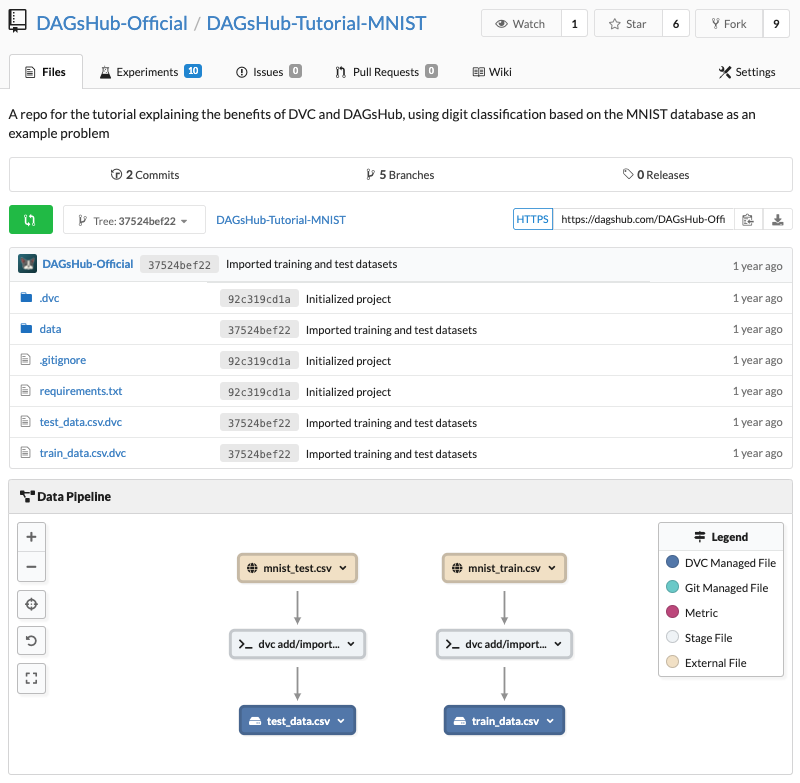- If you want to let someone browse your data and trained models, you can just send them a link to your DagsHub repo. They don't need to clone or run anything, or sift through undocumented directory structures to find the model they are looking for.