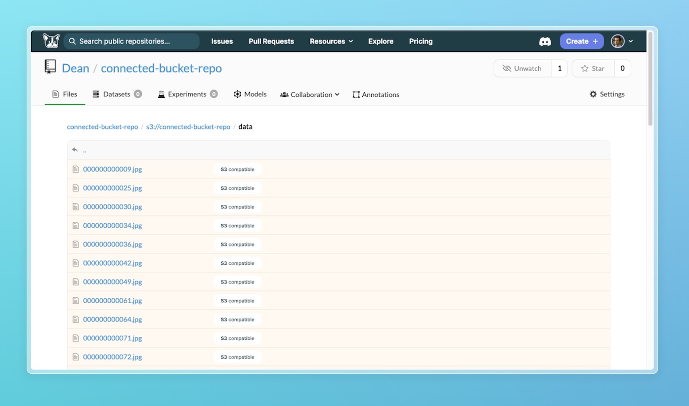 Let's assume we've uploaded a dataset of 50 files to our connected storage bucket with option 1